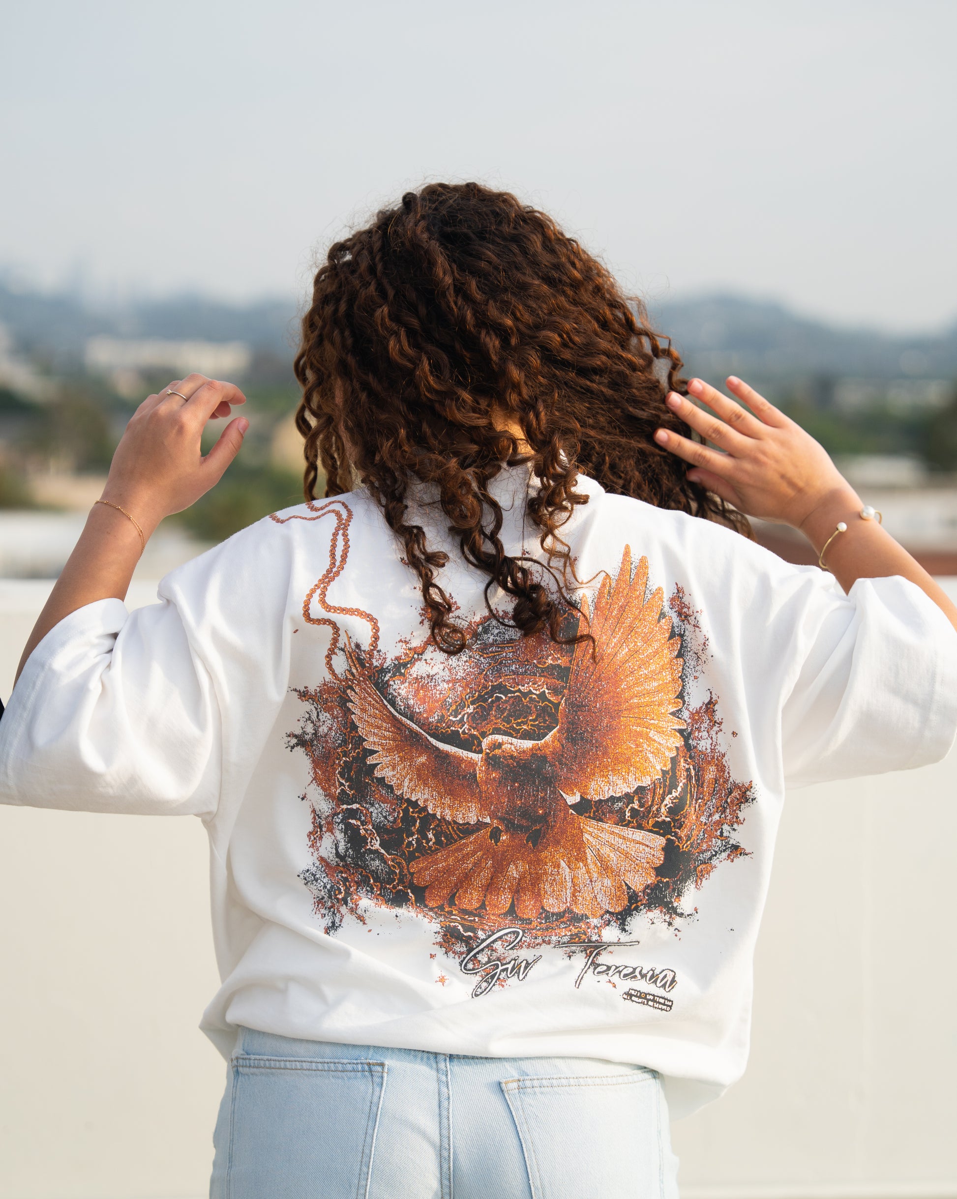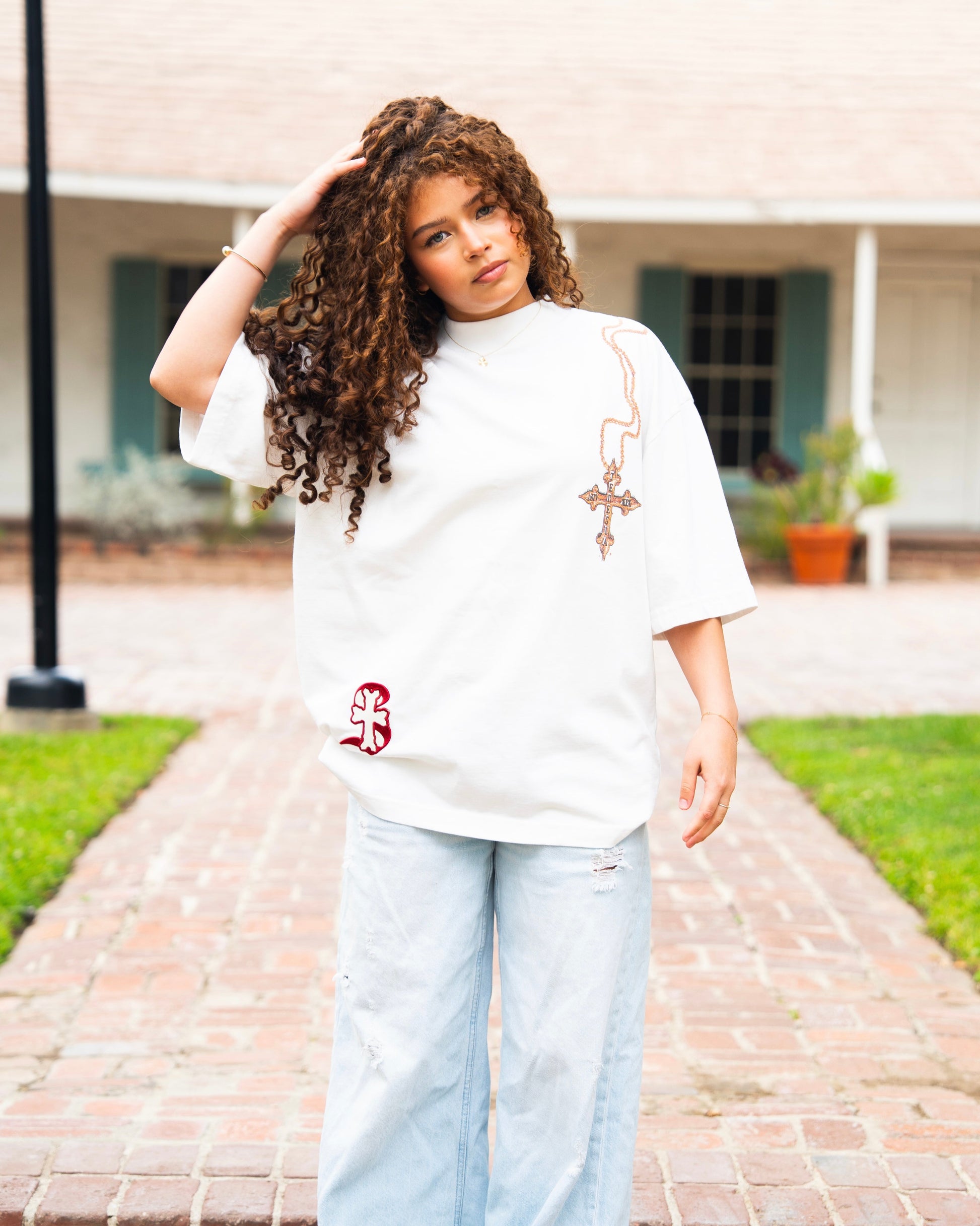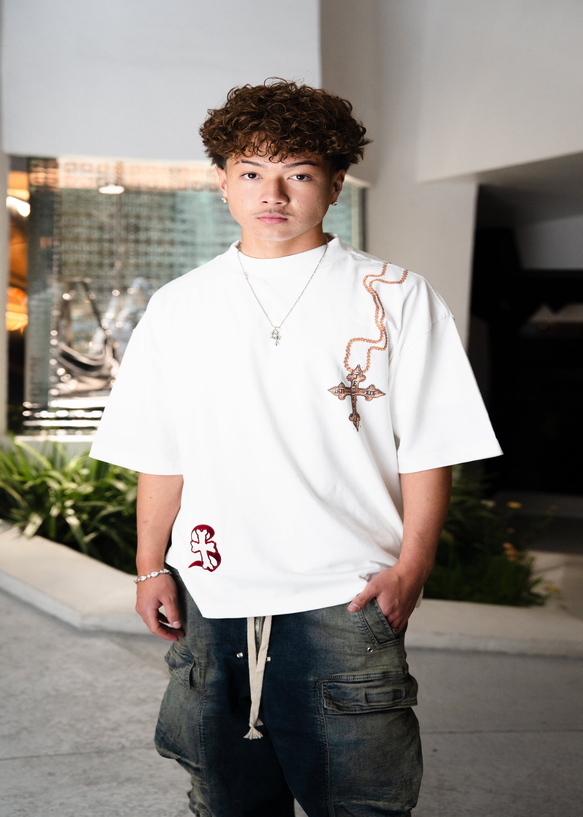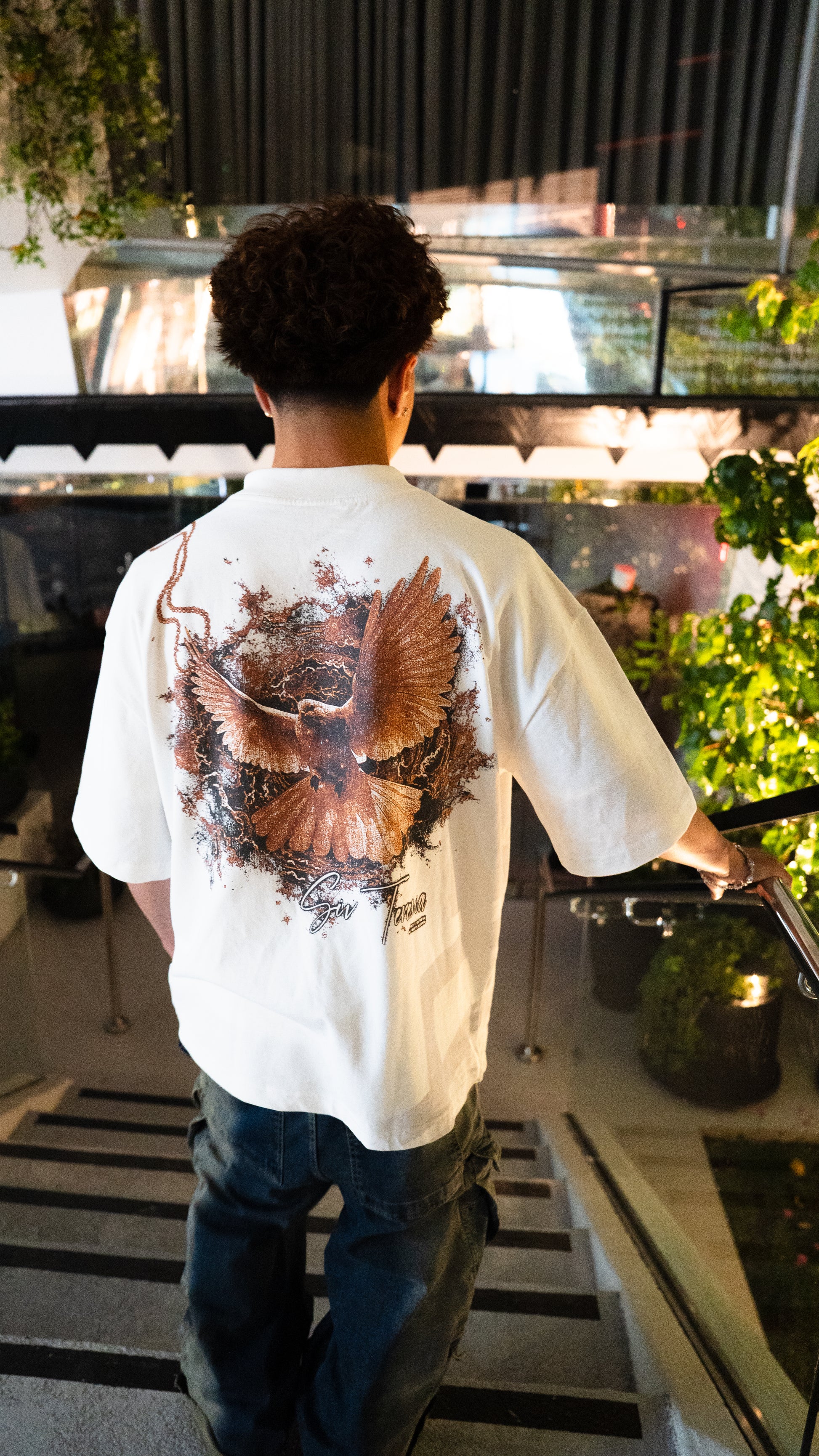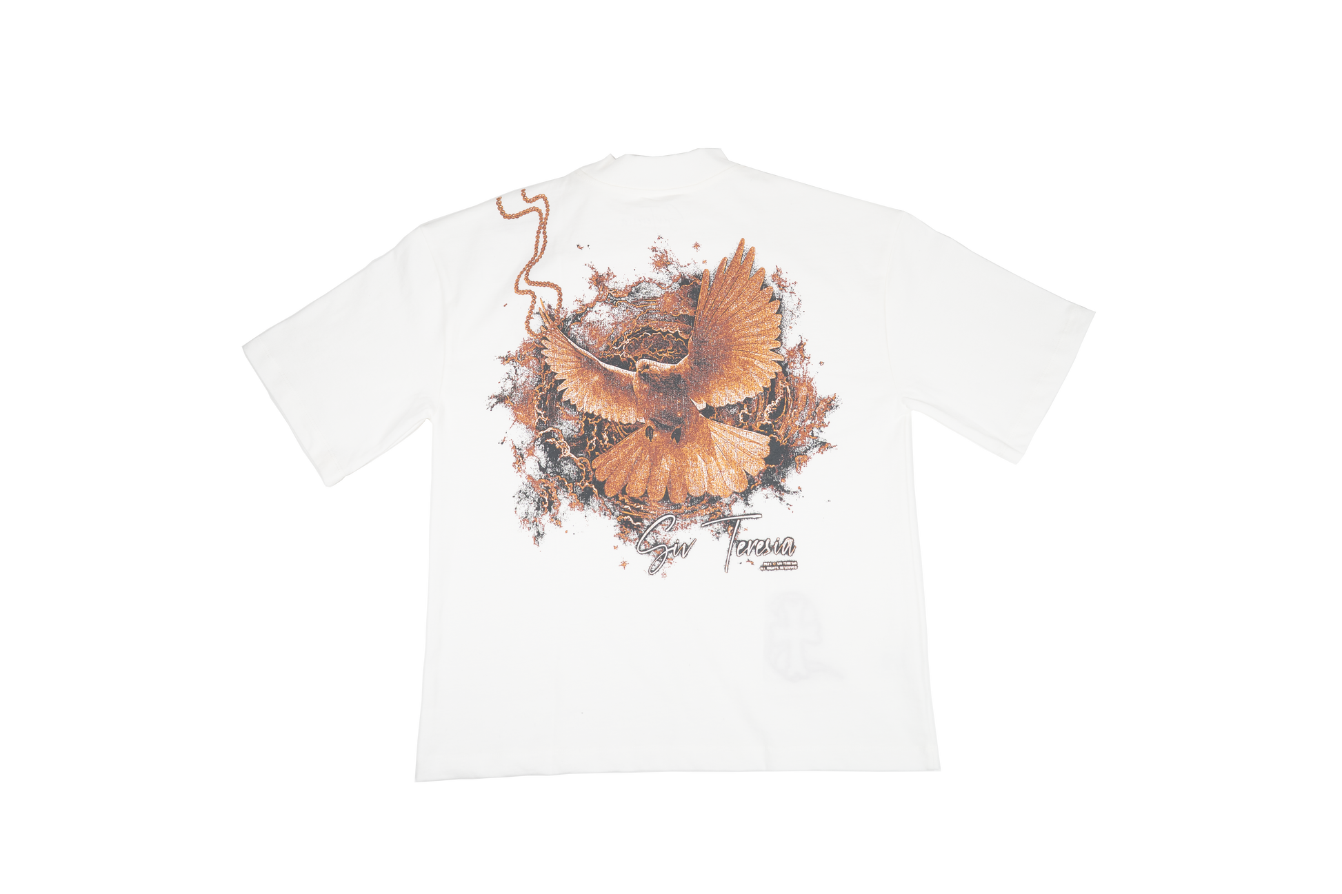 The Dove Tee captures the essence of divine strength and luxury streetwear. Crafted from heavyweight, premium cotton, this piece features authentic cow leather embroidery paired with a bold, high-resolution print of a dove rising through storm clouds with a cross. Designed for those who carry purpose and presence, this tee blends faith, fashion, and fearless design.